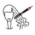 Επιλέξτε την πλευρά από την οποία θα ξεκινήσετε και κατά συνέπεια τον δεξιό ή τον αριστερό κύλινδρο. Πάρτε μια τούφα μαλλιών, ούτε πολύ φαρδιά ούτε πολύ παχιά (περίπου 2 cm) και πλησιάστε τον κύλινδρο στην άκρη της τούφας. Τα μαλλιά θα αρχίσουν να τυλίγονται αυτόματα γύρω από τον κύλινδρο. Πλησιάστε το styler κοντά στο κεφάλι και κρατήστε το στη θέση αυτή για περίπου 10 δευτερόλεπτα μέχρι το πλήρες στέγνωμα. Για να μεγιστοποιήσετε την διάρκεια του styling πατήστε το cool shot και κρατήστε το για λίγα δευτερόλεπτα πριν απελευθερώσετε την τούφα. Απενεργοποιήστε το προϊόν και σύρετε το προς τα κάτω για να απελευθερώσετε την τούφα.
