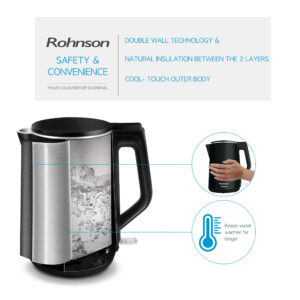 Νέος βραστήρας Rohnson R-7528 «Safe touch». Με τεχνολογία διπλού τοιχώματος, minimal σχεδιασμό, και χωρητικότητα 1.5L είναι απόλυτα πρακτικός κάθε στιγμή.